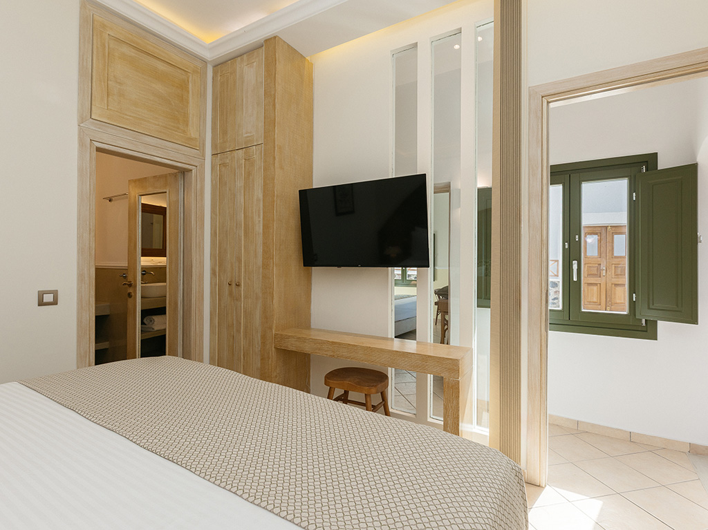 Guests can unwind in the heated private plunge pool overlooking the caldera, enjoying moments of privacy, tranquility, and the extraordinary beauty that defines Santorini.